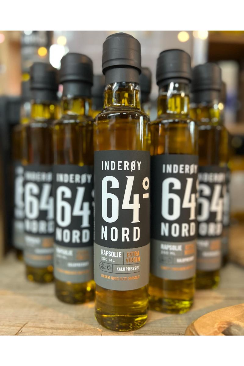 64 grader nord er et oljeeventyr fra Inderøy. Rapsfrøene dyrkes her på Berg Gård hvor også hele oljeproduksjonen foregår.